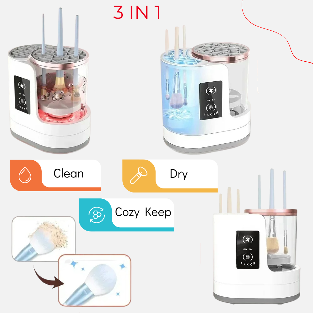 ✔ All-in-One Design: Washes and dries your brushes in the same machine – no sink mess, no waiting overnight.